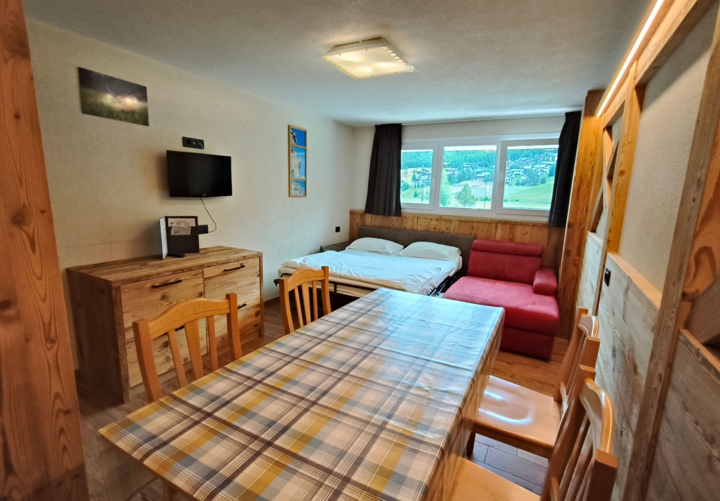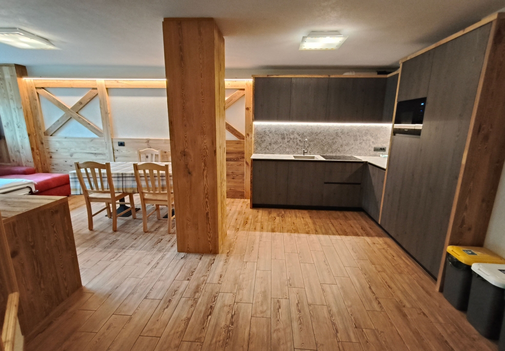 Nowocześnie urządzony, zachowuje jednak ciepło górskiego wystroju. Bardzo przestronny (55-60 m2), idealny dla rodzin lub grup, które chcą przeżyć wspólnie swoje wakacje. Może gościć od minimum 2 osoby do maksymalnie 4, plus ewentualne łóżeczko dziecięce.